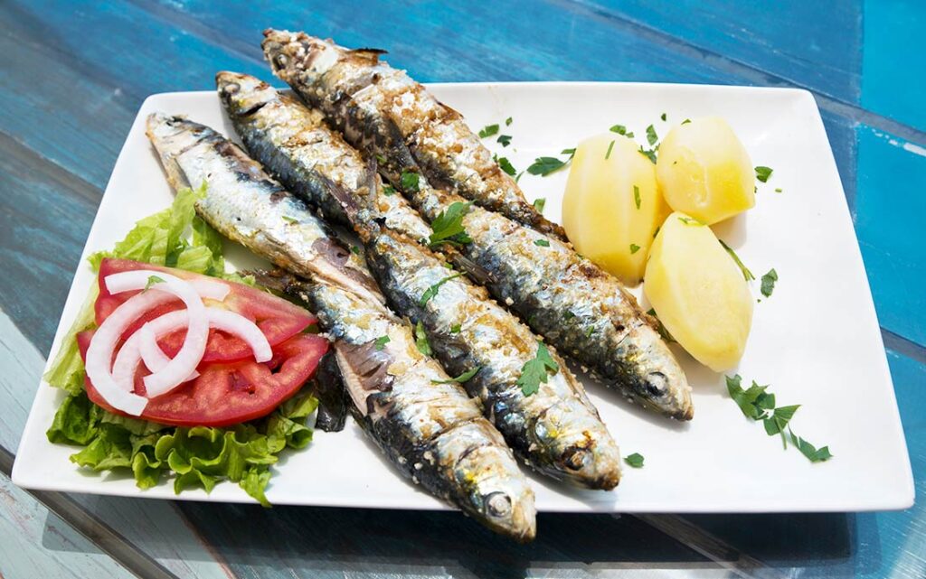 Portugisiske sardiner er i en klasse for seg selv. Tro meg. Det kjølige Atlanterhavet forsyner portugiserne med sprellferske sardiner, og om sommeren finnes det ikke noe å bedre enn å spise grillede sardiner med fingrene med utsikt over havet.